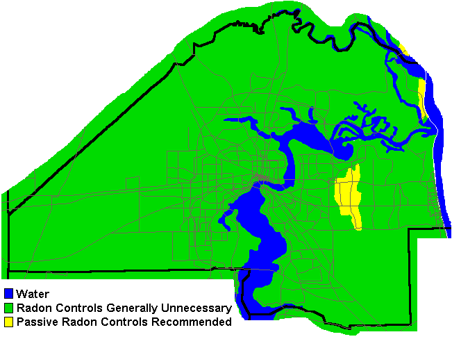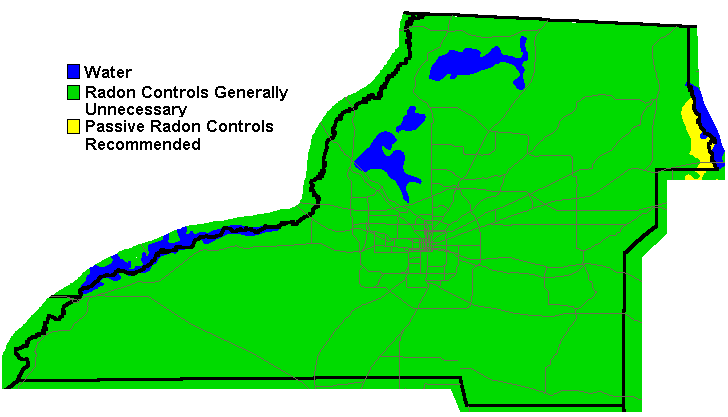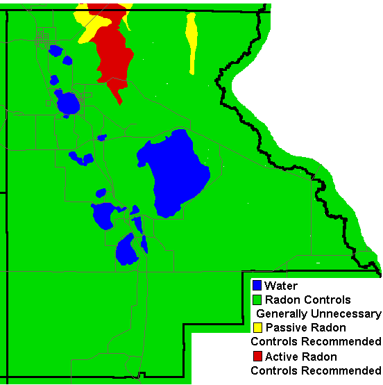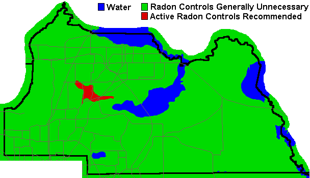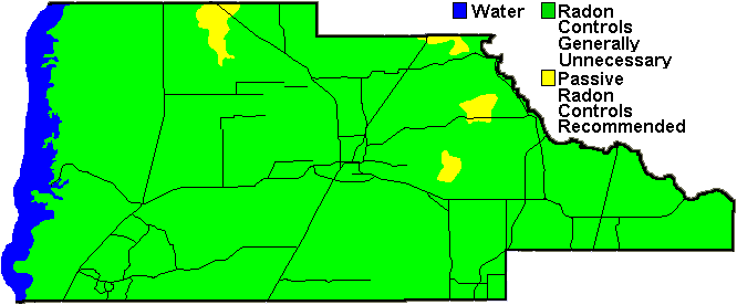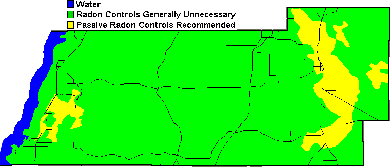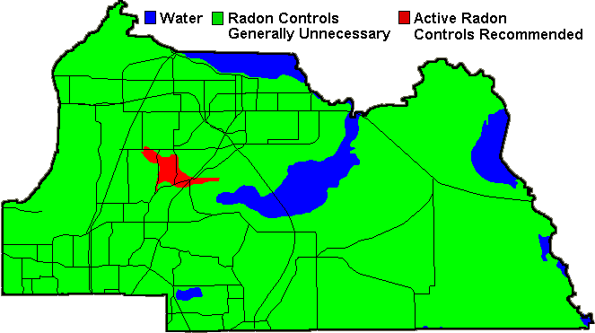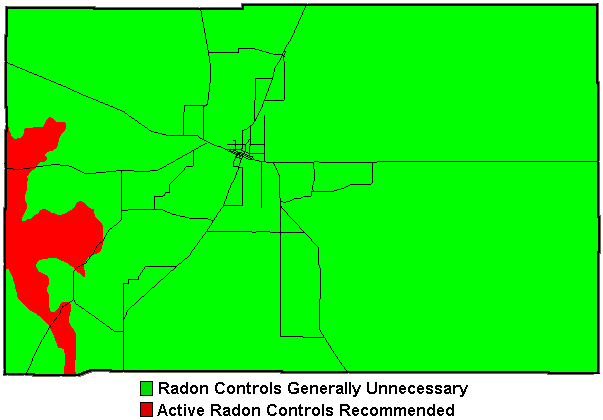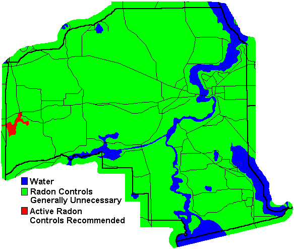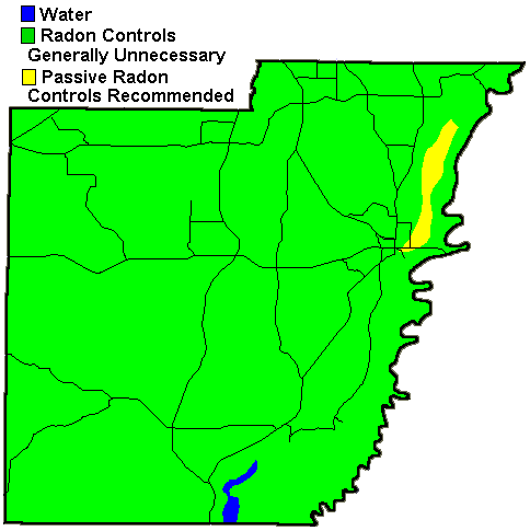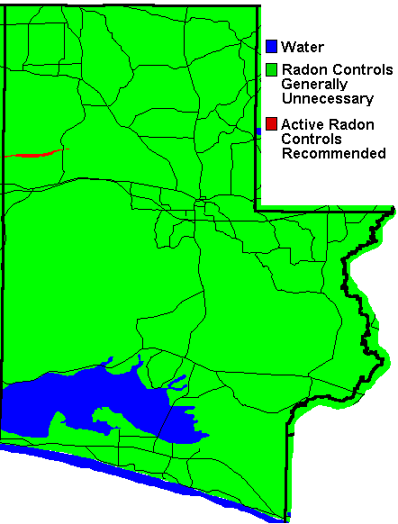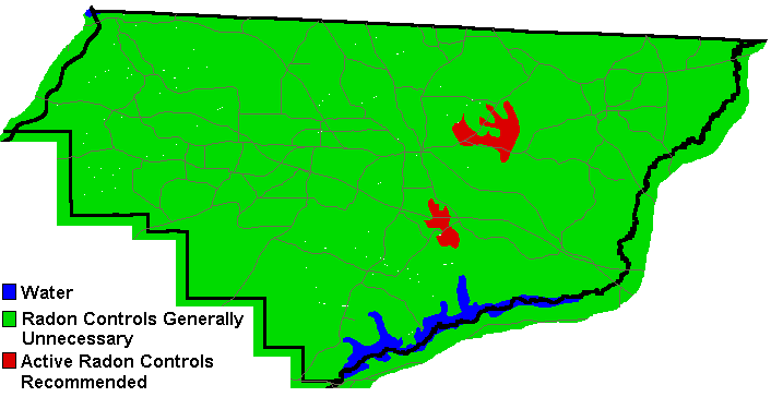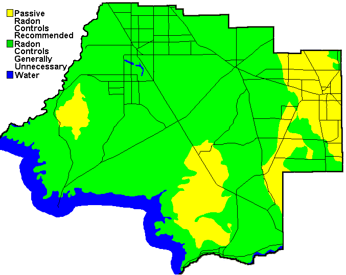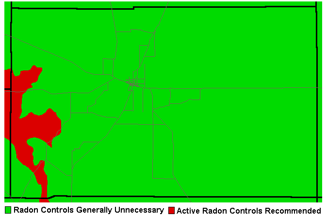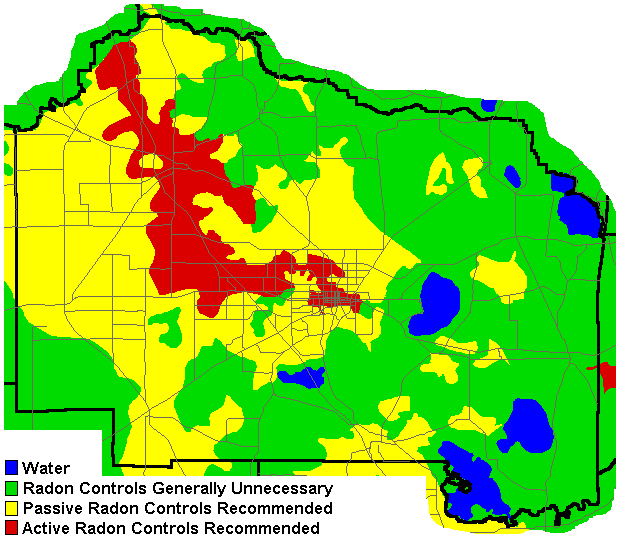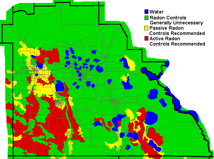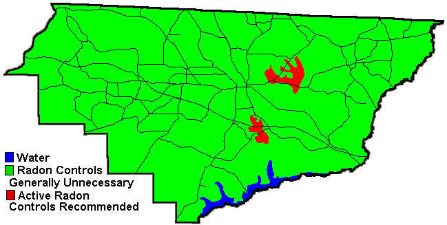 The maps linked below are color coded. Red areas are zones where active radon control is recommended (ARC). Yellow areas are zones where passive radon control is recommended (PRC). Finally, green areas are zones where radon control is generally unnecessary (RCU).